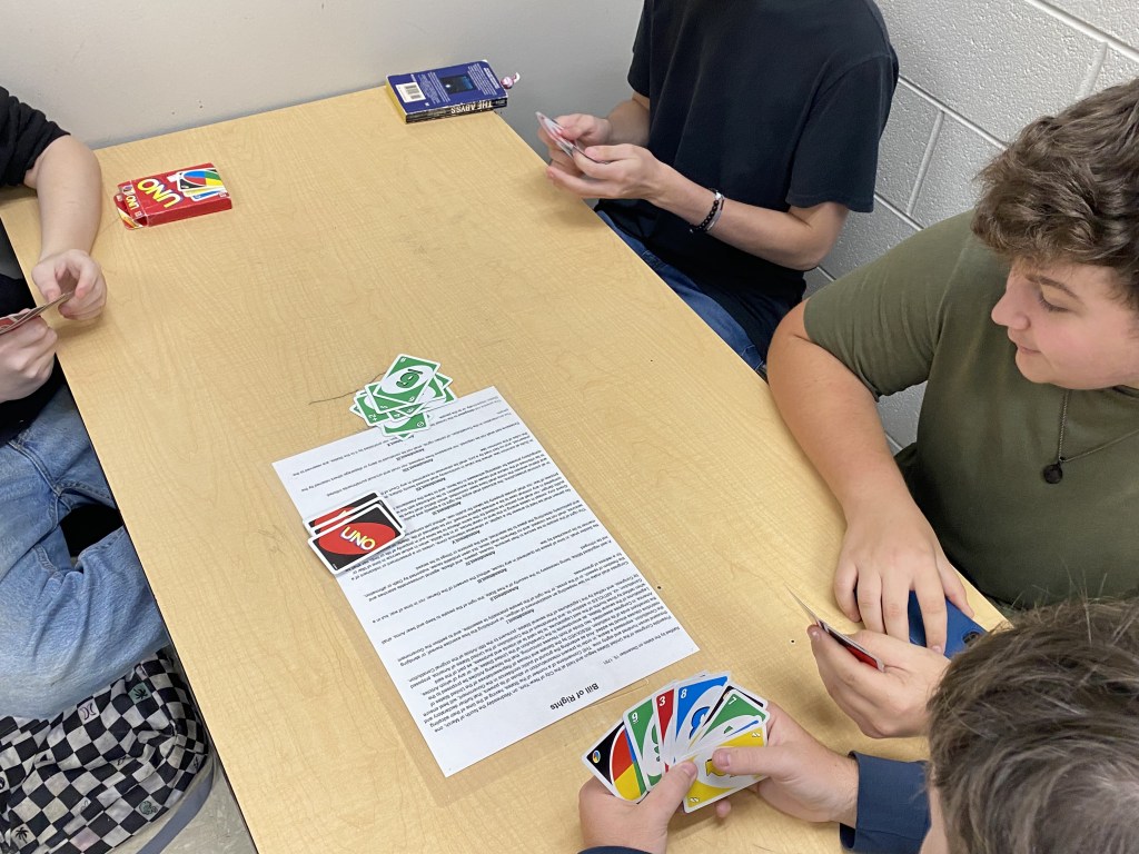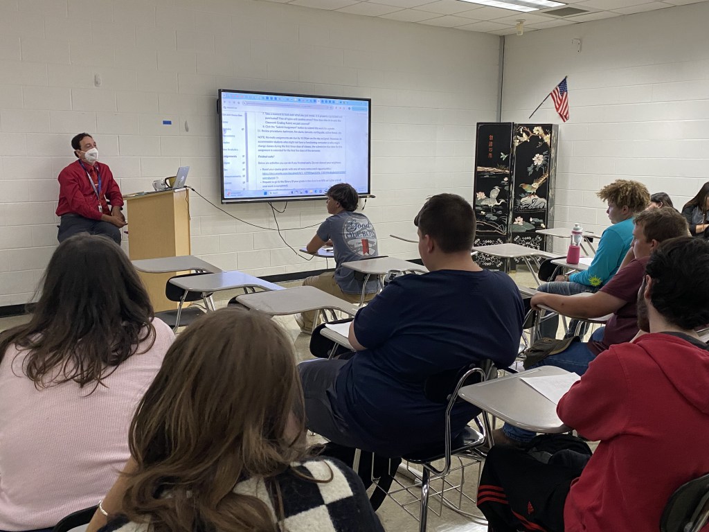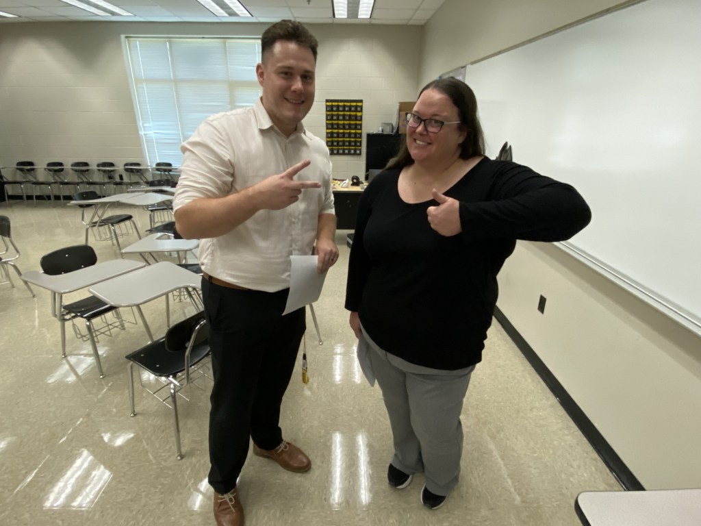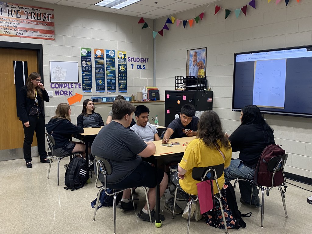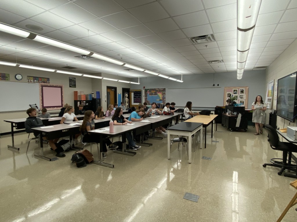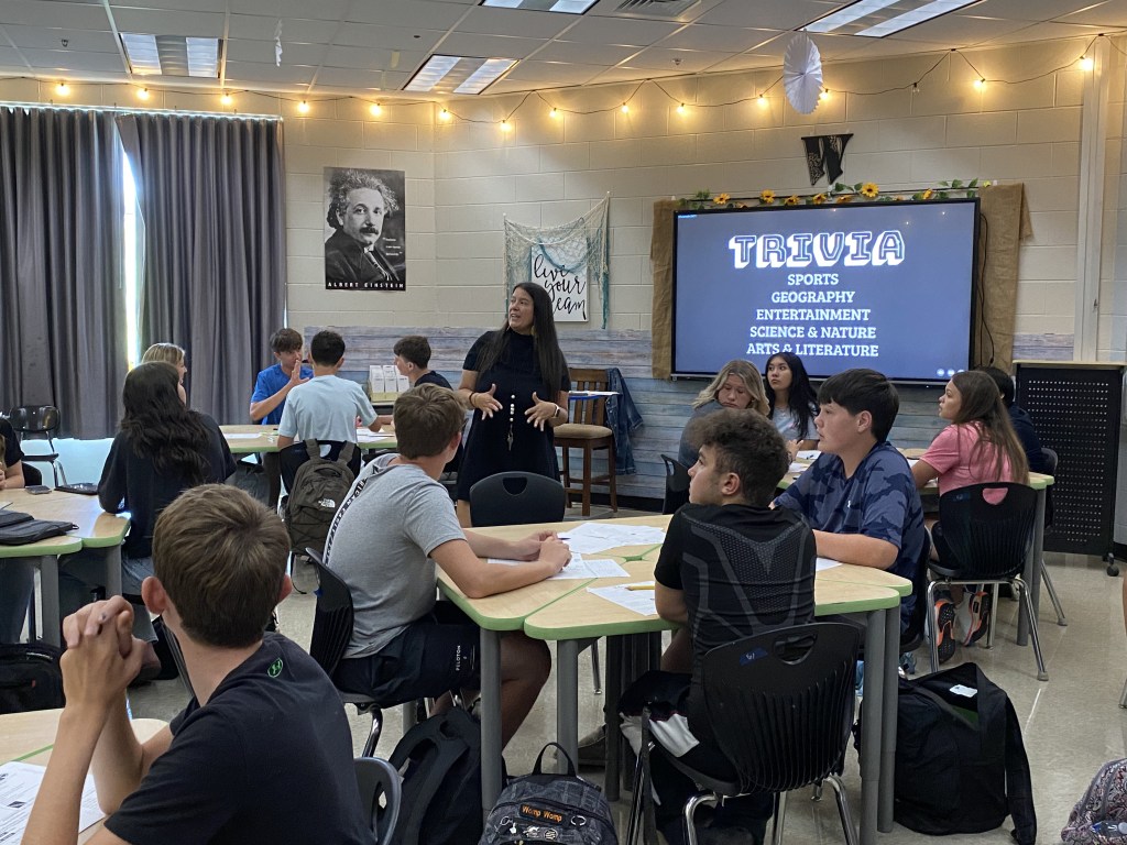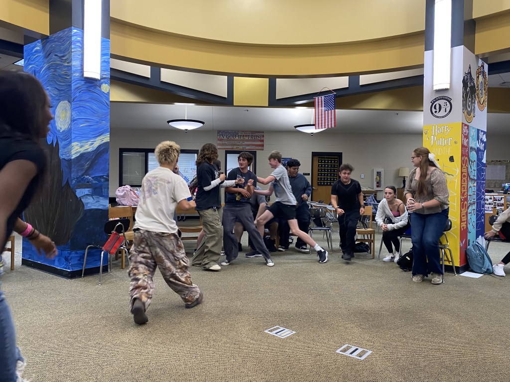 There were so many engaging first-day-of-school activities, that it’s hard to just name a few. Students in the library played fruit basket turnover. Mrs. Guay had students make a playlist using their top ten favorite songs, which really showed her their personalities and music preferences. Ms. Hunt had students using uno to create personal finance scenarios. Mr. Murray had seniors visit his class as guess speakers. Mrs. Carlson, Mrs. Tarlton, Ms. May, and Mrs. Wampler’s classes were playing trivia. Mrs. Sampson’s class had a Getting to Know your Classmates through World Geography activity.