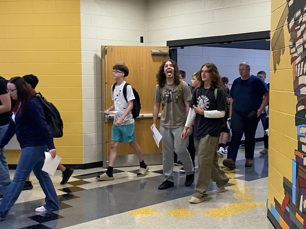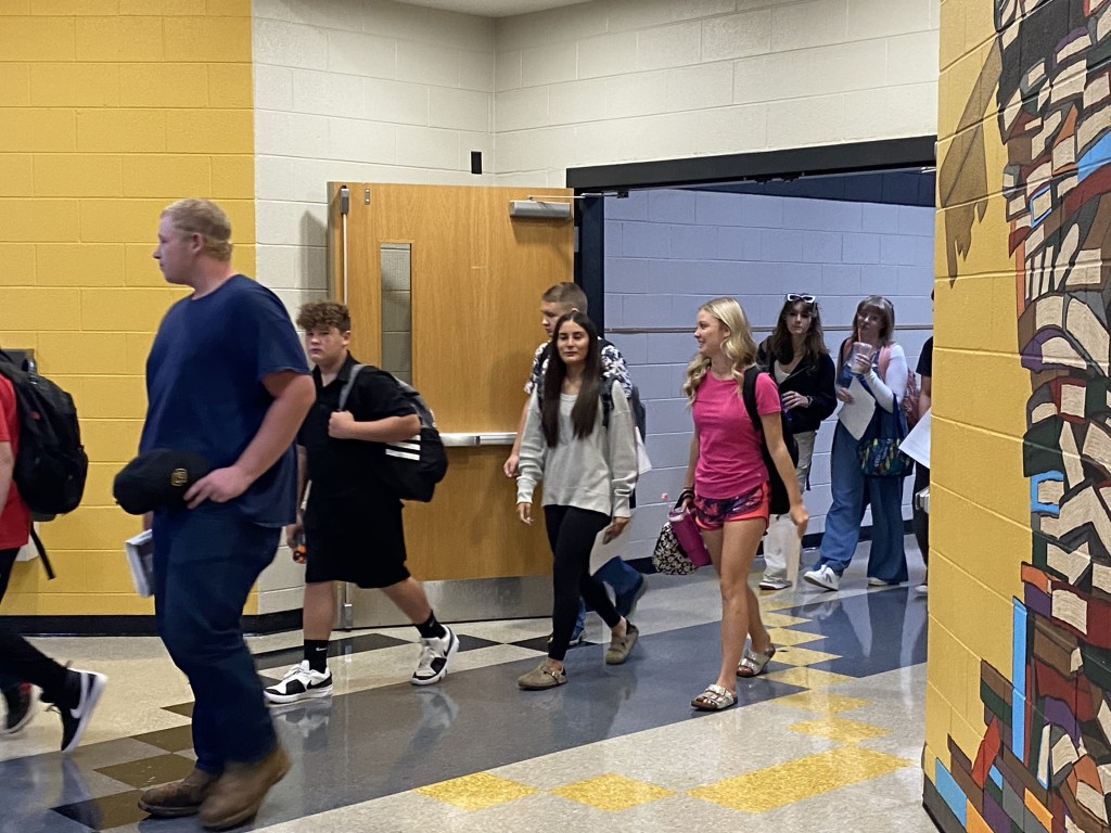 Students grades 9-12 headed back to class on Tuesday at Chuckey-Doak High School. Students began arriving on campus at 7:15 am. Schedules were printed and available for students to pick up in the Commons, and then students chose whether to go to breakfast or the gym. At 7:50 am, students began walking to class, and first period began at 8:00 am.