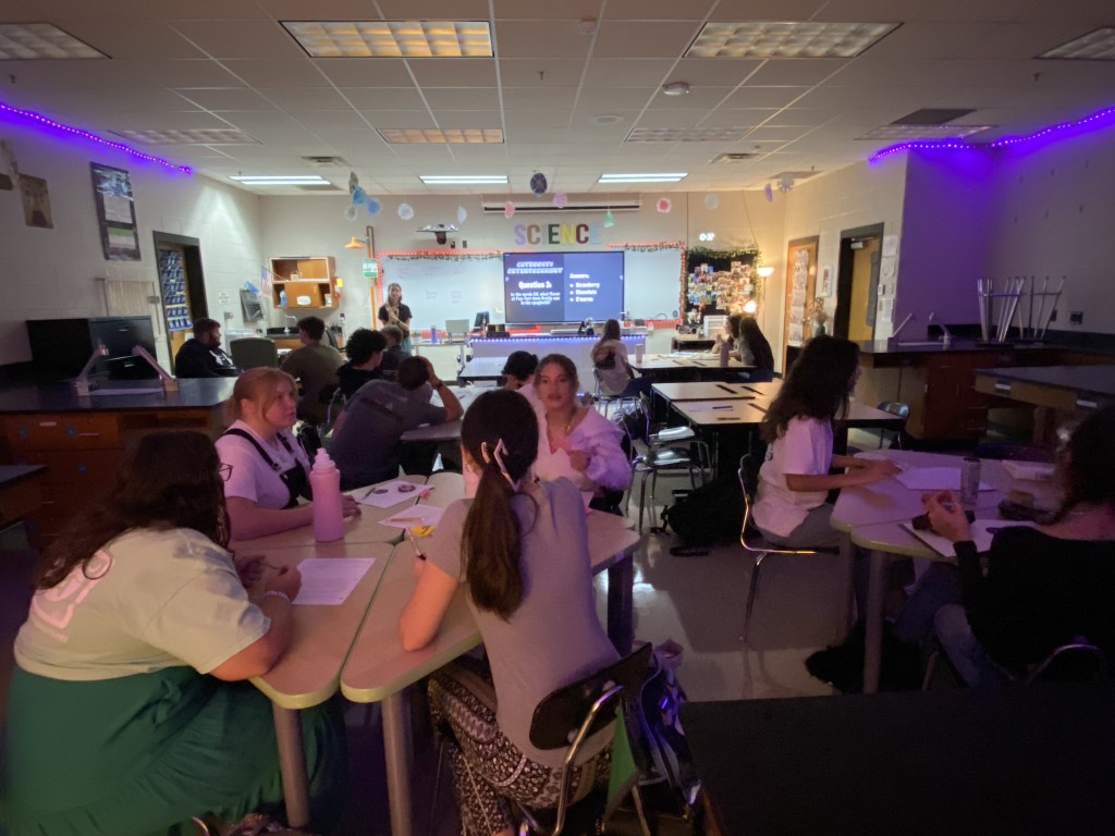 One of the coolest activities of the day was in Mrs. Medlin’s science classroom. Mrs. Medlin had students read evidence about The Complicated Case of the Camp Clearfield Killings. They then used the scientific discovery method to analyze their evidence and solve the crime. There were so many great lessons and activities on the first day, but this activity in particular was a huge hit with the students and gave them something to talk about!