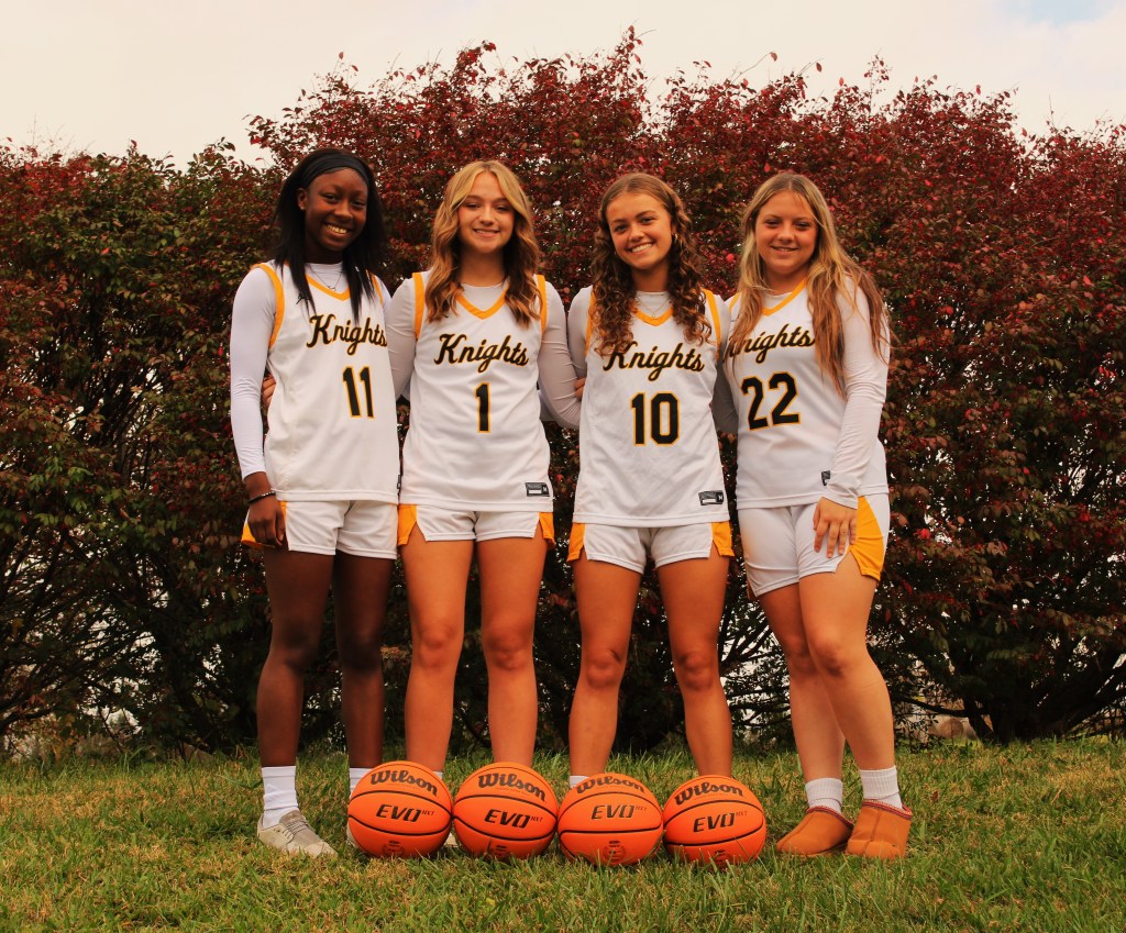 Girls Basketball includes Saniah Atchinson, Kennedy Brown, Tayvn Southerland, Layla Fox, Traylyn Southerland, Jayden Myers, Isabelle Karriker, Chloe Kirkpatrick, Khloe Henderson, Sarah Yates, and Jesse Dayton. Four of the players are seniors: Saniyah Atchison, Kennedy Brown, Layla Fox, Jacy Southerland. They are coached by Dr. Kyle Donahue.