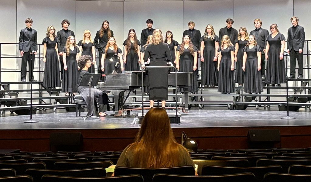 In the Chorus, students learn fundamental music concepts, including sight reading, rhyme, and vocal technique. They develop their individual voices while also mastering the delicate balance of blending with others. The Chorus classroom is a space where discipline meets creativity, as singers work collaboratively to interpret diverse musical pieces. The chorus sings the National Anthem for some basketball games and competes at competitions. The Chorus recently competed at a competition called JB Lile, where they got excellence. In the chorus world, that is a really good score. The Chorus is directed by Mrs.Cari Allen.