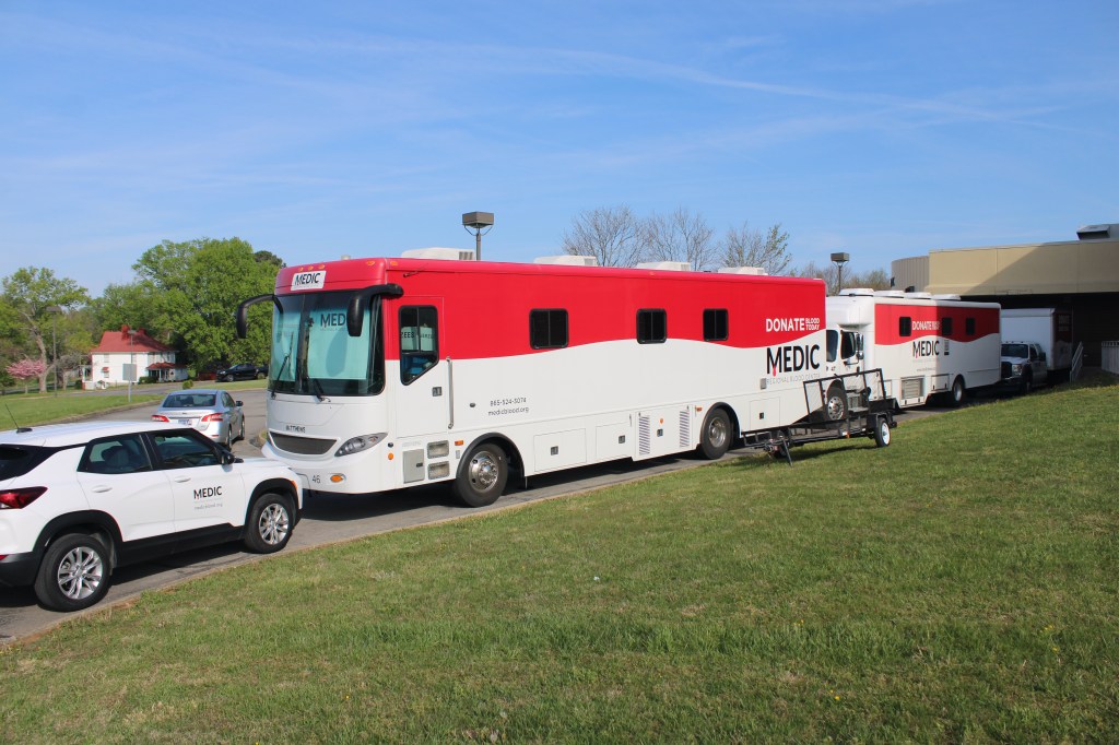 The team at Medic set up their stations in the theater room, but this year, they also had stations set up in their vans and buses. The workers at Medic made sure that everyone who wanted to give blood got the opportunity to donate. This year’s program was the fastest ever; everyone who signed up and was eligible to donate gave blood quickly and sufficiently due to the hard-working staff at Medic.